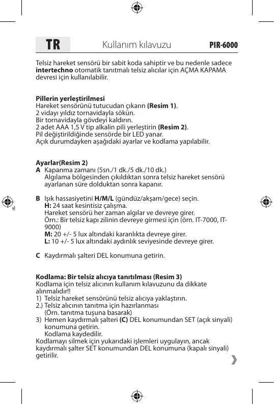 Örn.: Bir telsiz kapı zilinin devreye girmesi için (örn. IT-7000, IT-