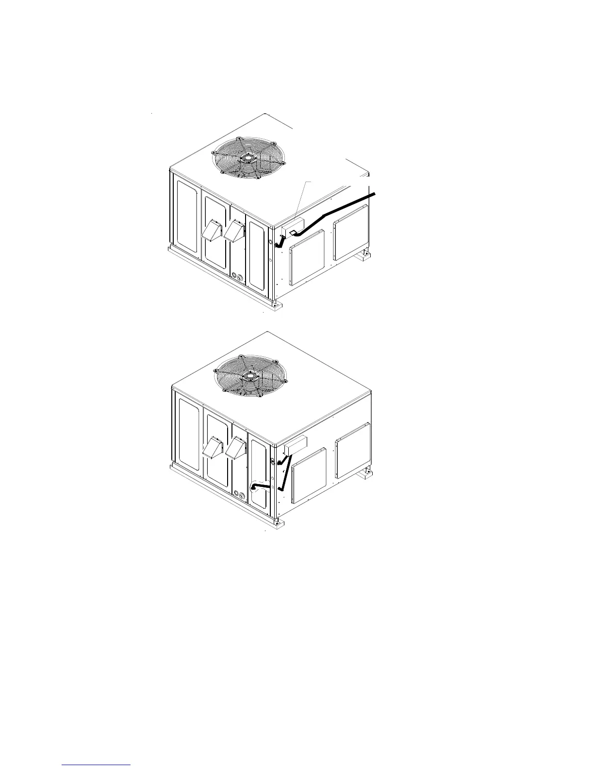 approved weatherproof conduit. Low voltage wiring from the unit control panel to the thermostat requires coded cable. See below