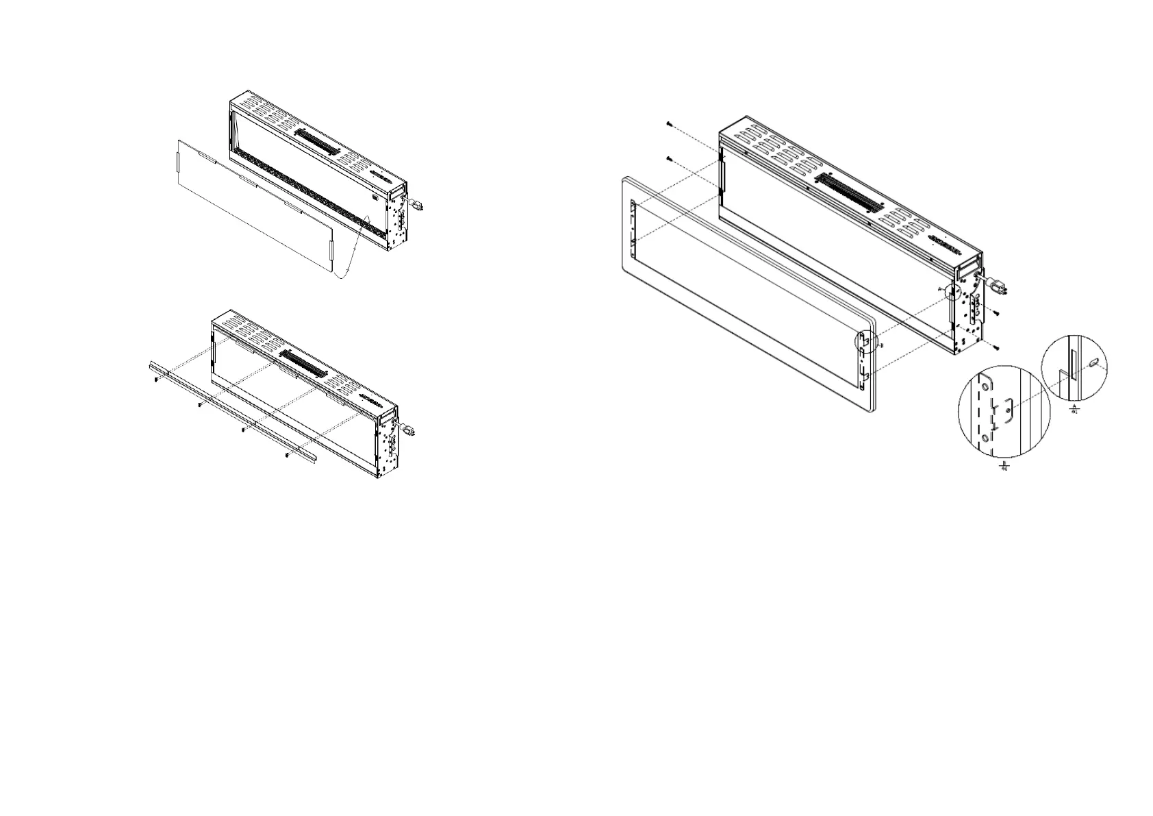 ⚫ Place the front glass and steel panel surround over the front of the fire aligning the