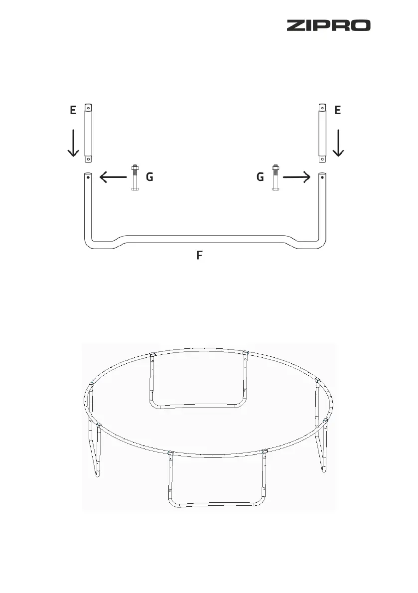 Varžtais (G) sujunkite visus kojelių pagrindus (F) su kojelių pailginimais (E).