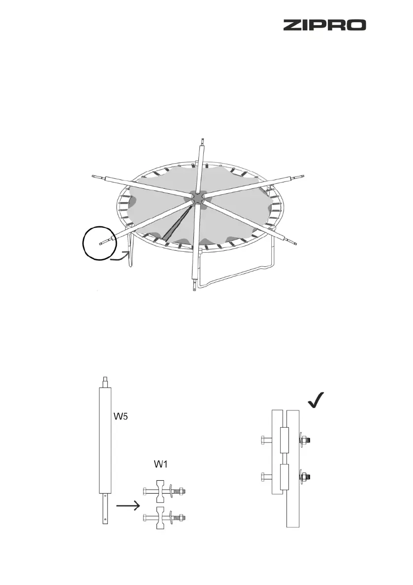 Panaudodami montavimo rinkinyje (W1) esančius varžtus ir veržles, prisukite strypus