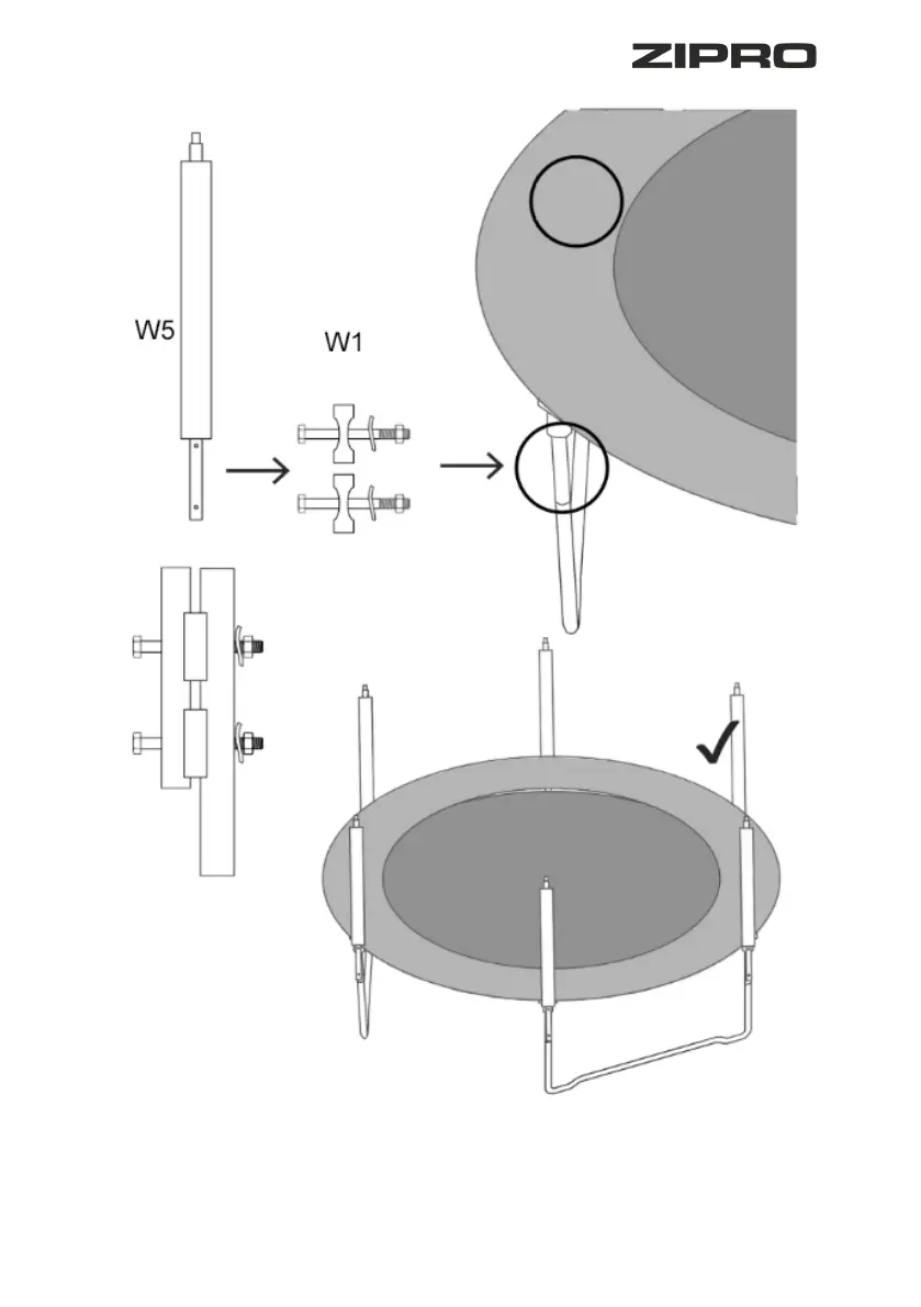 Na tym etapie montażu trampolina powinna wyglądać jak pokazano na rysunku powyżej.