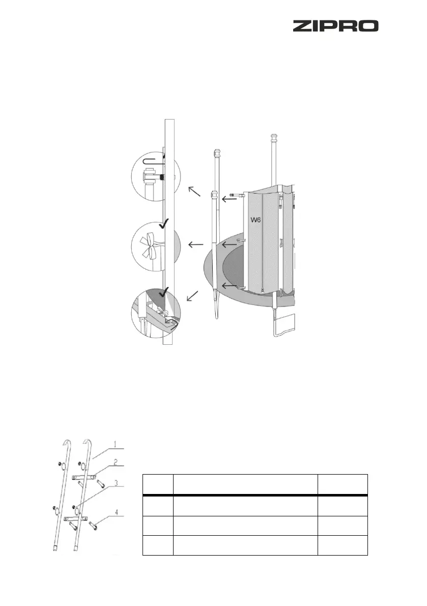 Insert the mesh strips (W6) on the post extension covers (W2) and fasten them in the