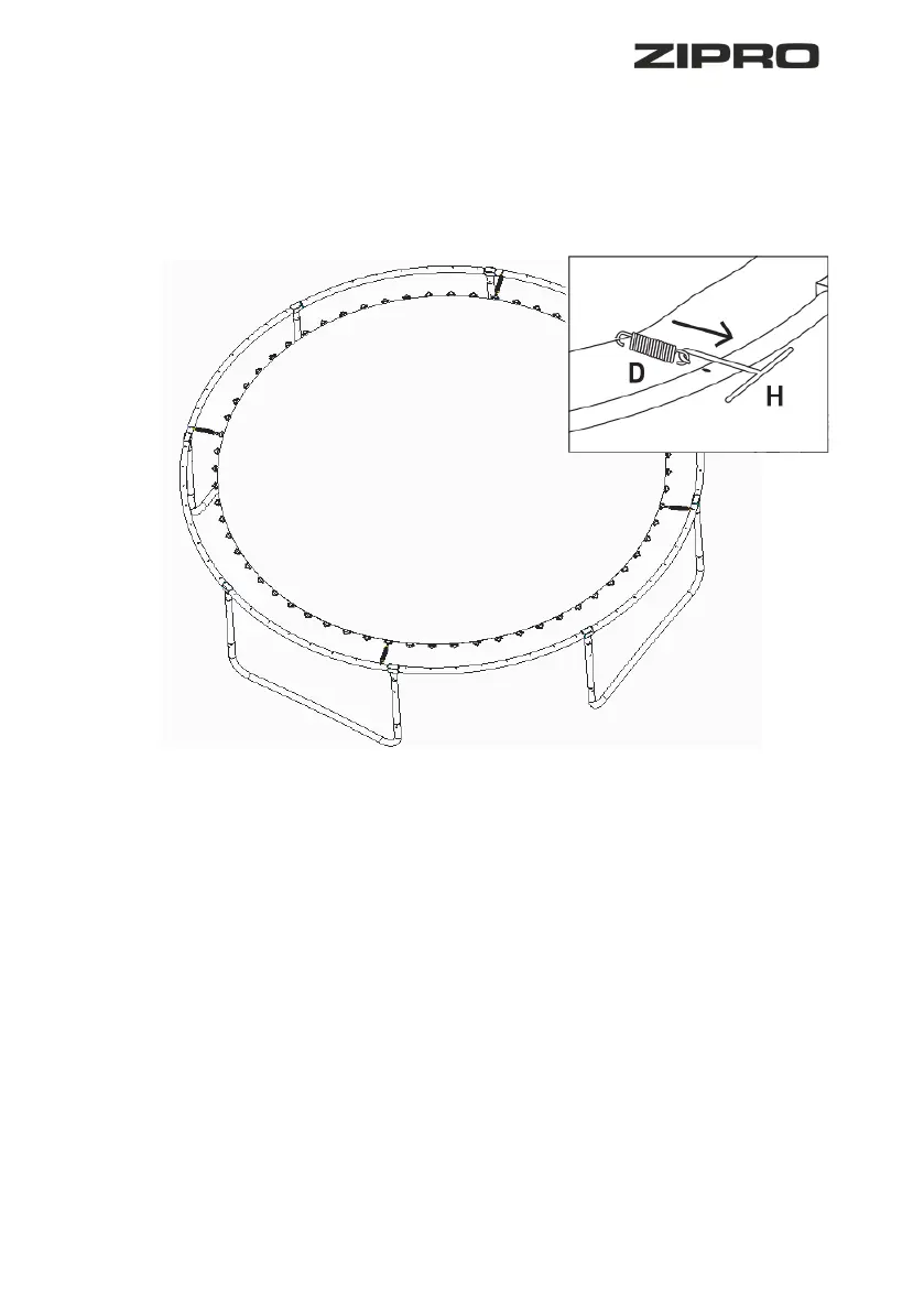 Entfalten Sie die Sprungmatte (C) und befestigen Sie sie mit Federn (D) am Rahmen.