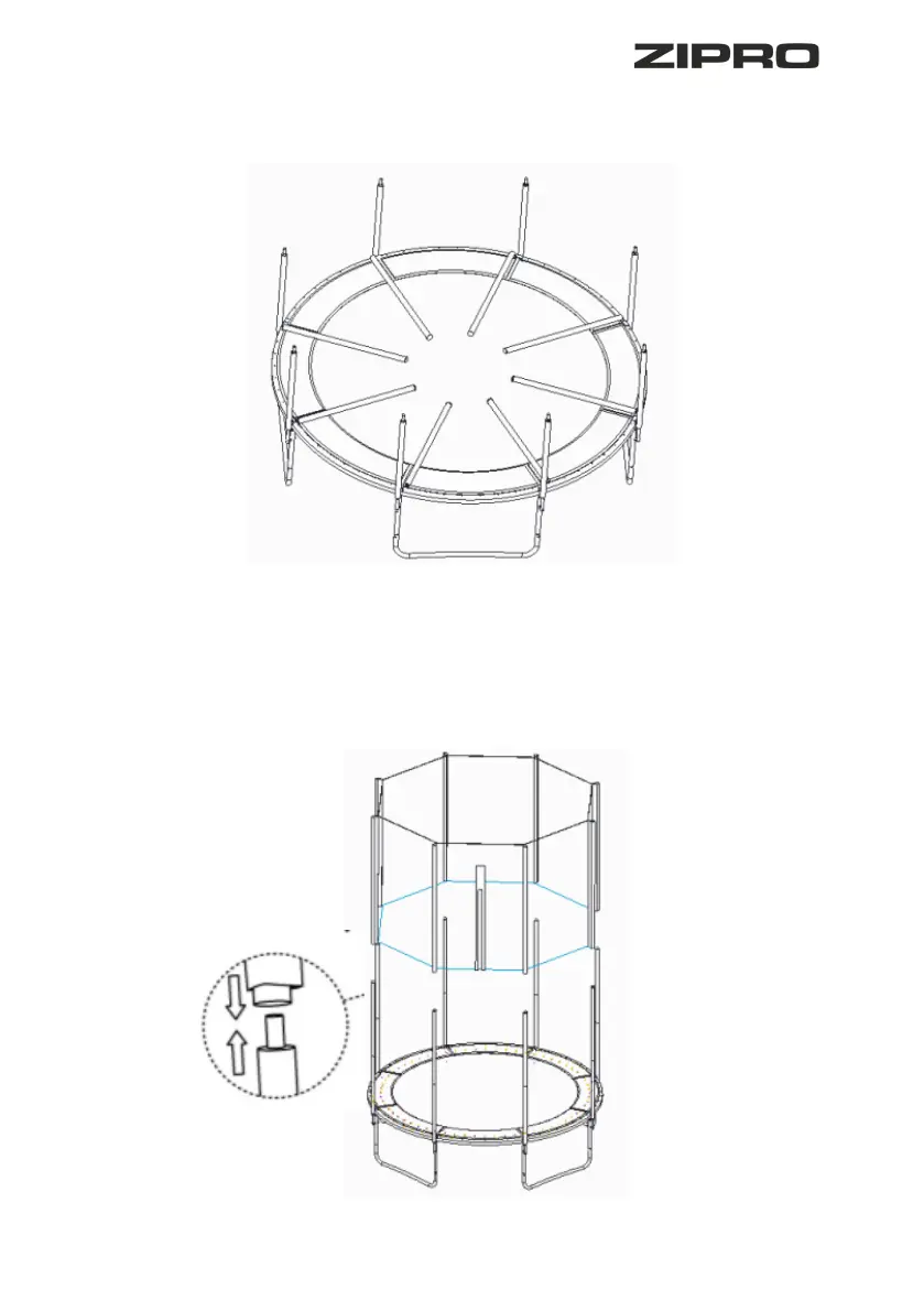 In dieser Montagephase sollte das Trampolin so aussehen.