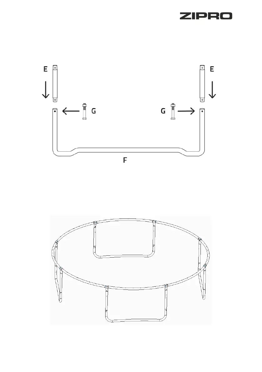 (Не касается батутов размером 6" и 8"). Соединить все основания ножек (F) с