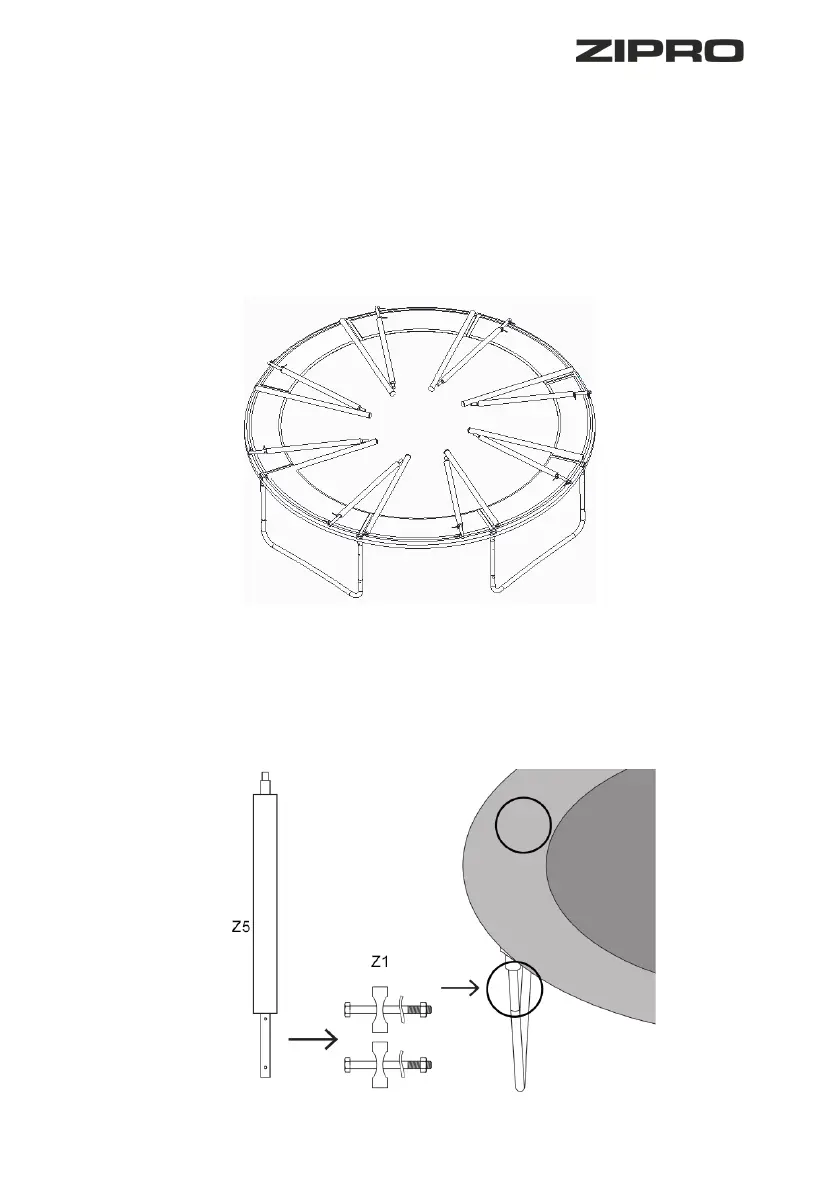 Используя болты и гайки из монтажного комплекта (Z1), нижние части стоек (Z5) к