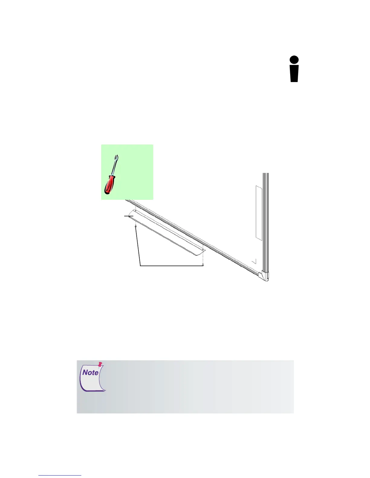 1 Locate the predrilled screw holes for the Pen Tray in the frame of the