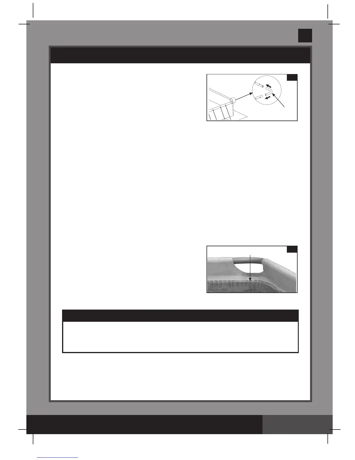 12. Before filling the pool with water, ensure that the drain plug inside the pool is closed and that the drain