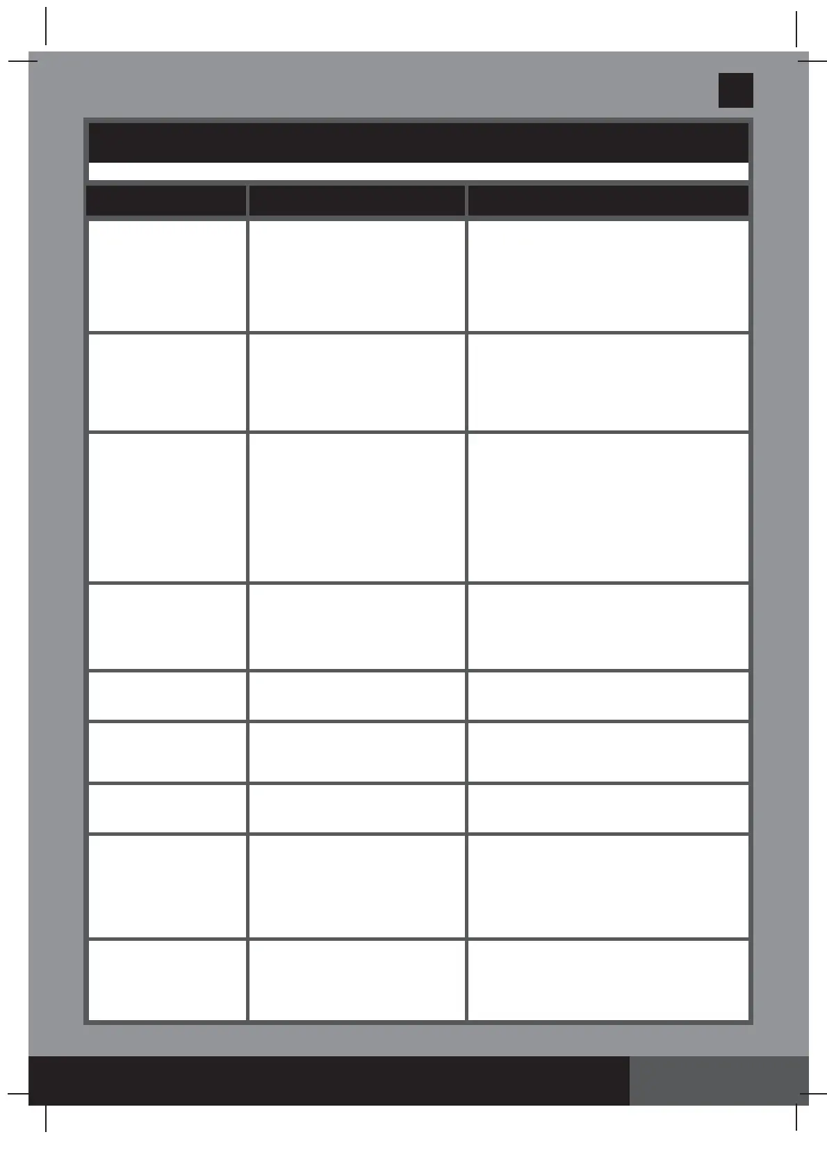 TROUBLE CAUSE SOLUTION