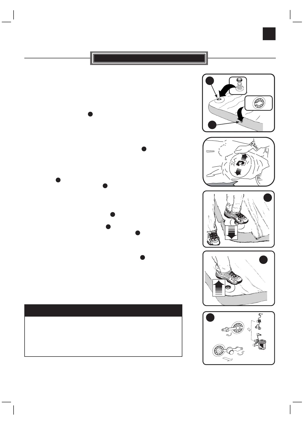 • Insira o bico da bomba na válvula do colchão