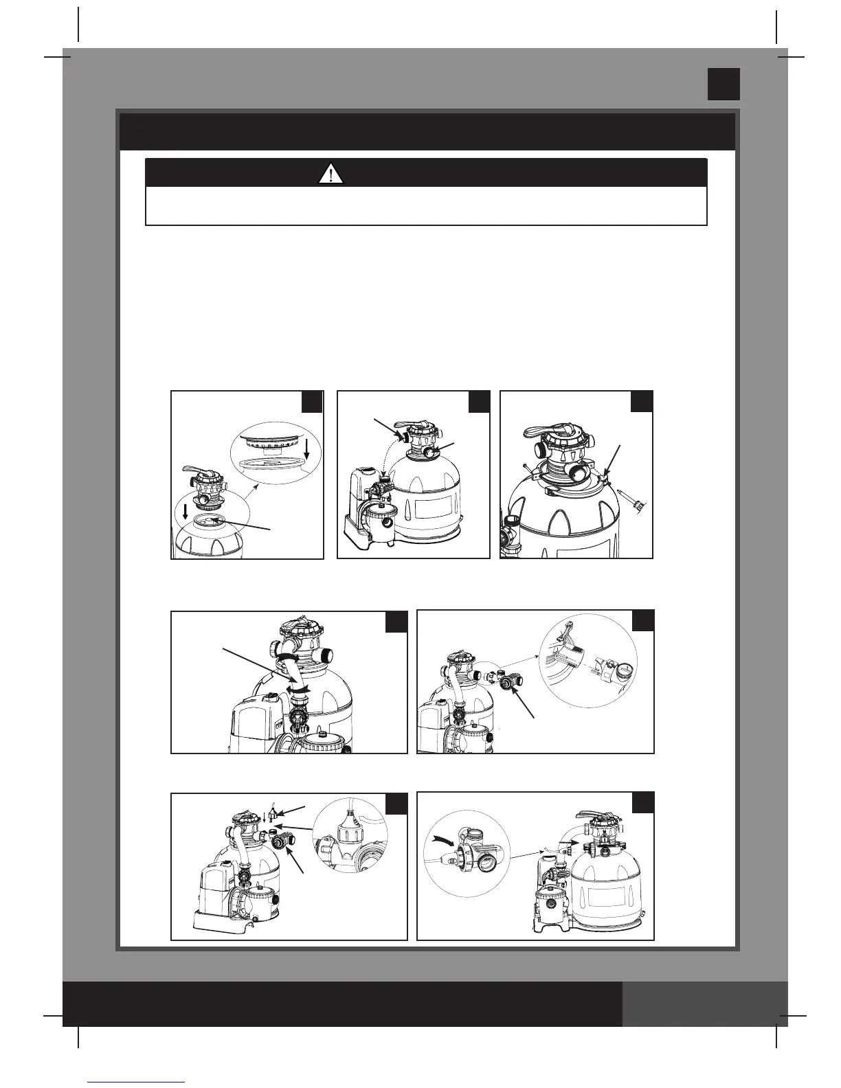 Connect the sand filter interconnecting hose (13) between the 6-way valve inlet and motor