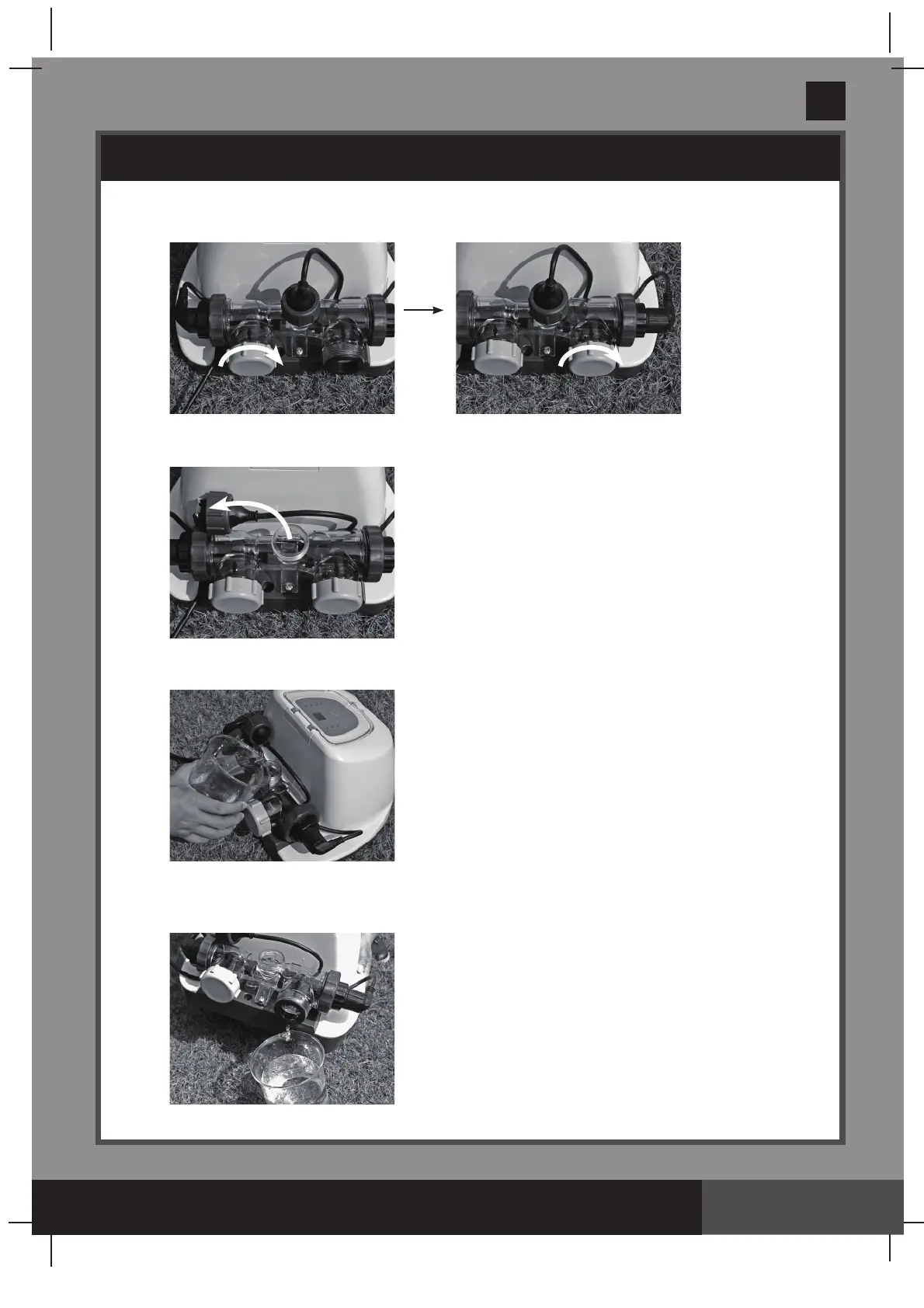tuyau qui va de la piscine à la cellule. Rincez le boîtier de la cellule électrolytique avec l’eau