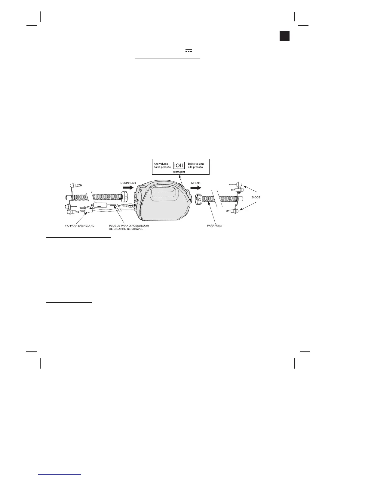 4. Para inflar rapidamente artigos como colchões e brinquedos use a posição "–" (alto volume-baixa pressão).