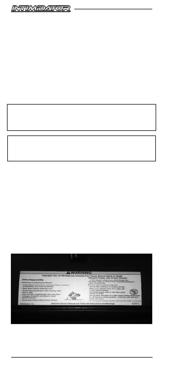 READ THIS OWNER’S MANUAL. The Intimidator is an off-