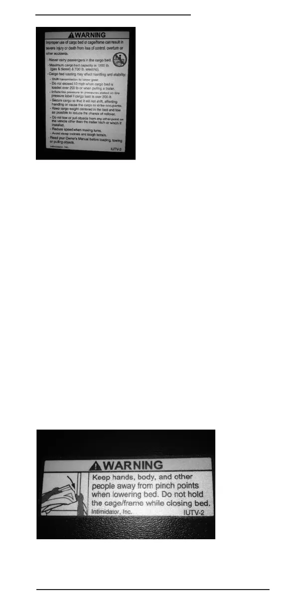 Cargo Bed Safety Warning– Located in the cargo bed.