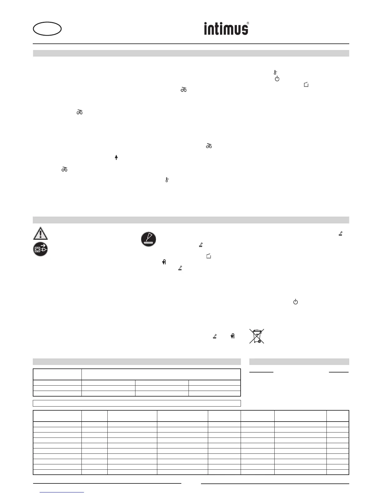 intimus 60SC2/60CC3-CC6 220-230V/50Hz · 3,0 A · 0,7 kW 120V/60Hz · 5,6 A · 0,7 kW 100V/50/60Hz · 7,0 A · 0,7 kW