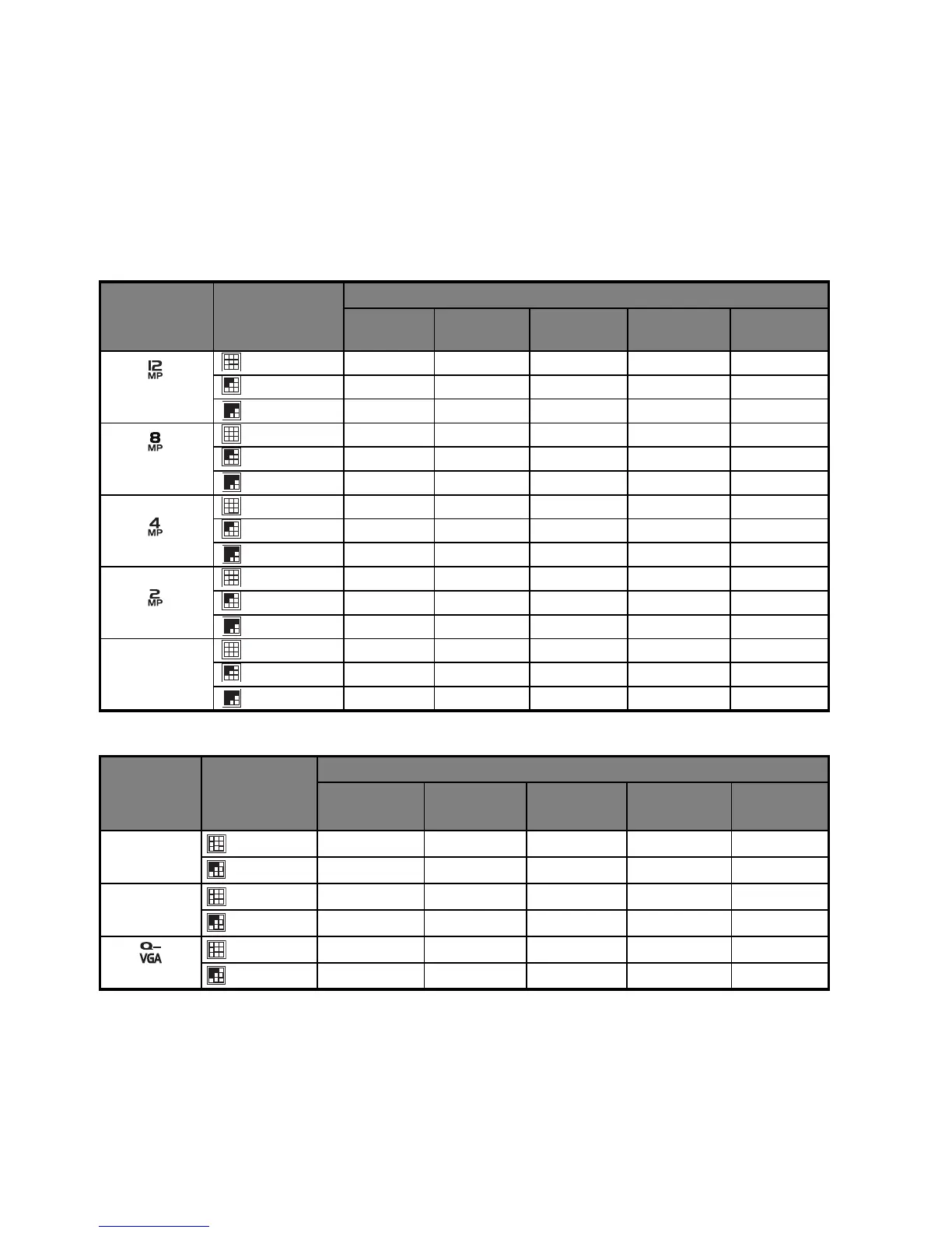 The table shows the approximate shots that you can capture at each setting based on