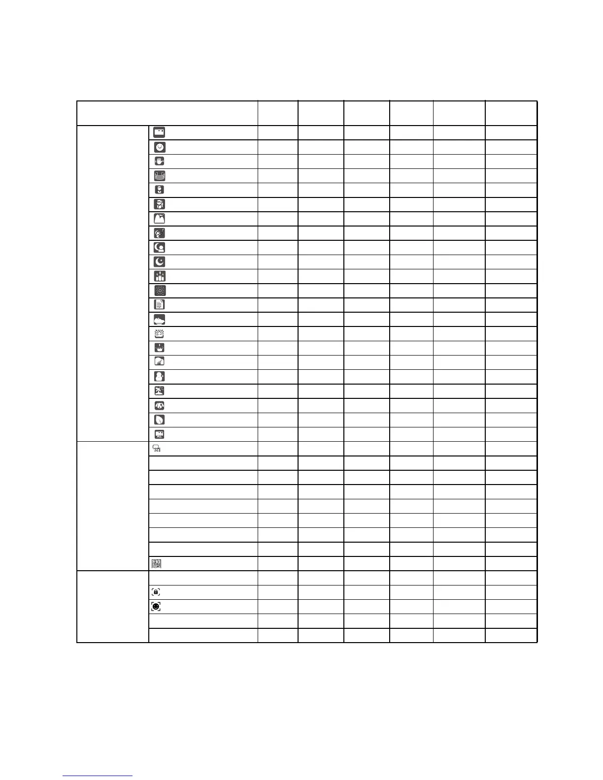 The available flash settings in different photography modes: