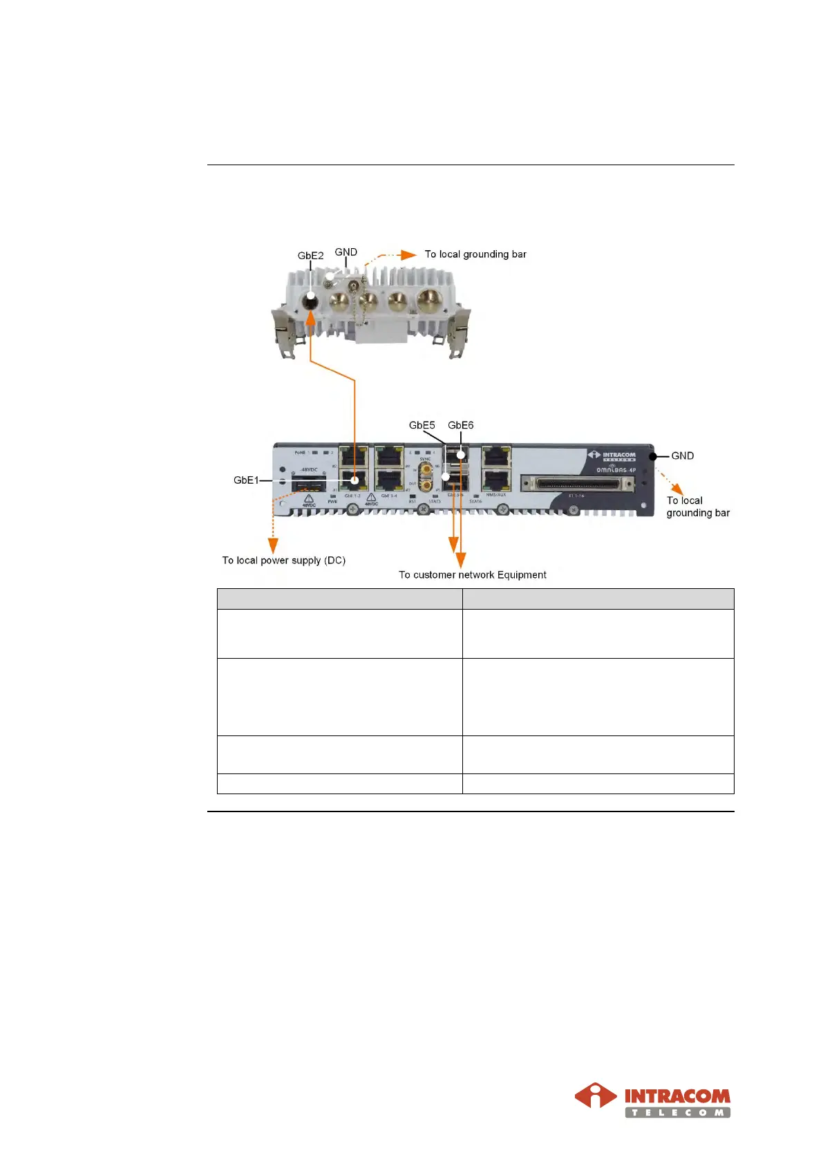 Gigabit ETH cable for service Traffic, Inband Management