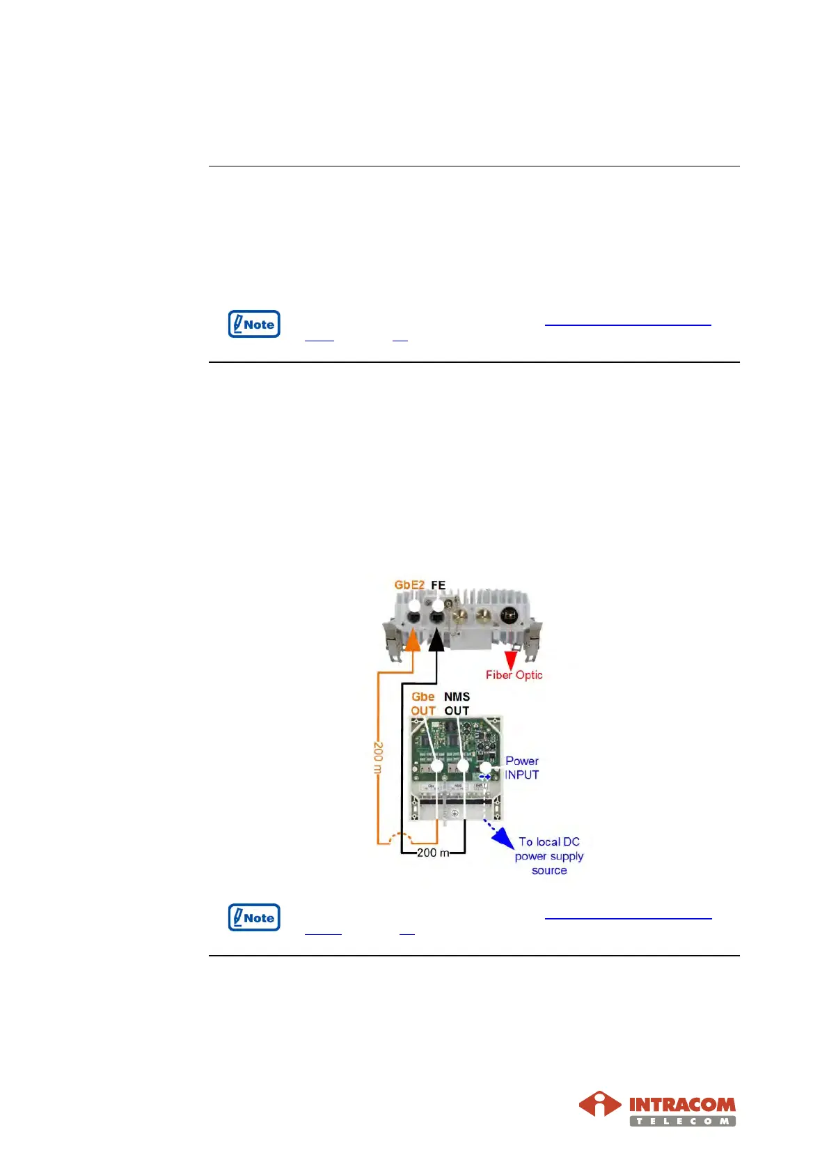 between OSDR receptacle (GbE2 or FE) and power injector receptacle