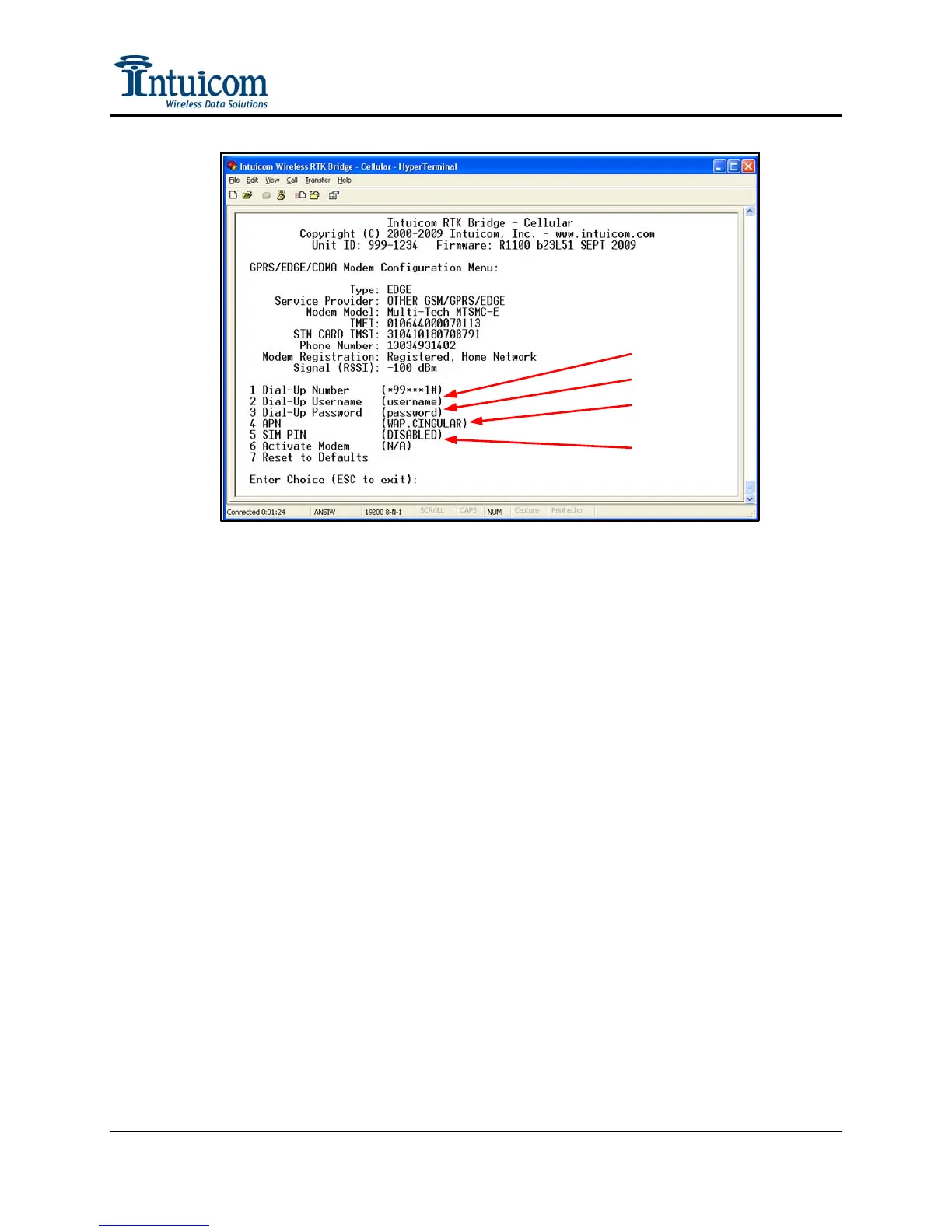Figure 2-9: GPRS/EDGE APN, Username, and Password Parameters