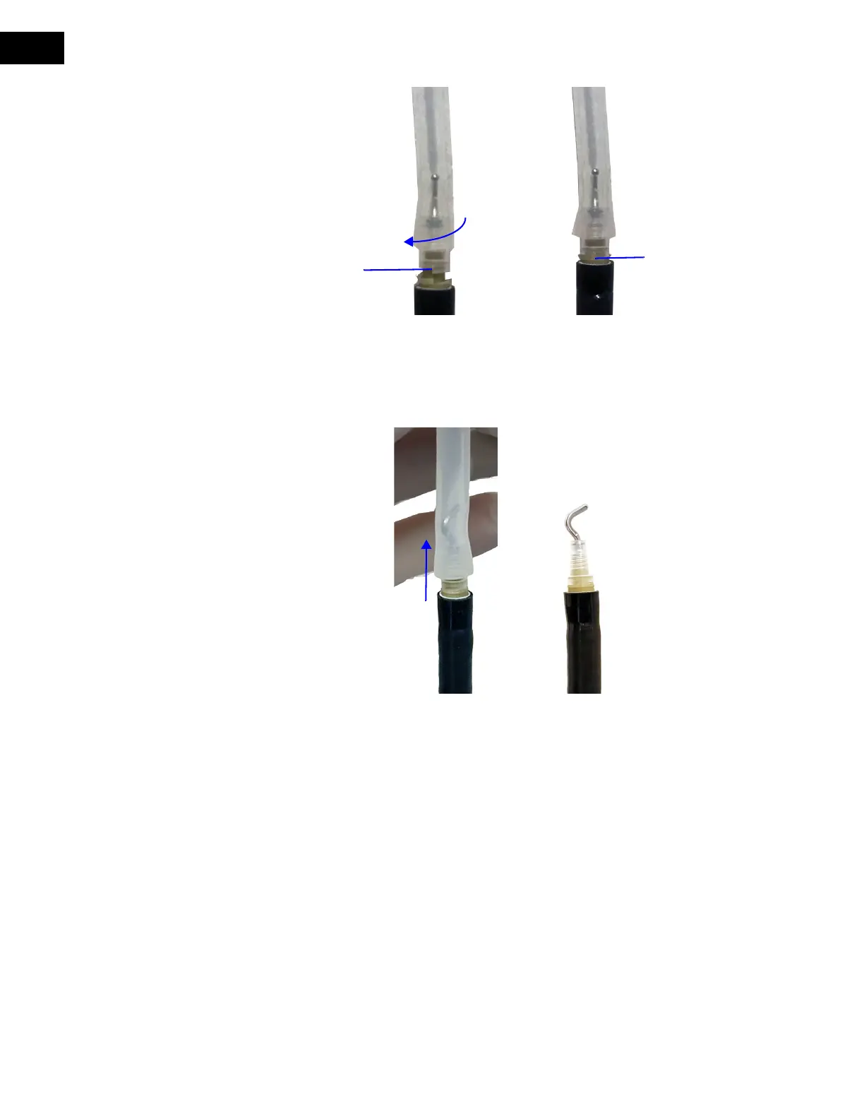 Figure 6.5 Rotate the plastic component of the monopolar cautery tip (A), and confirm it is
