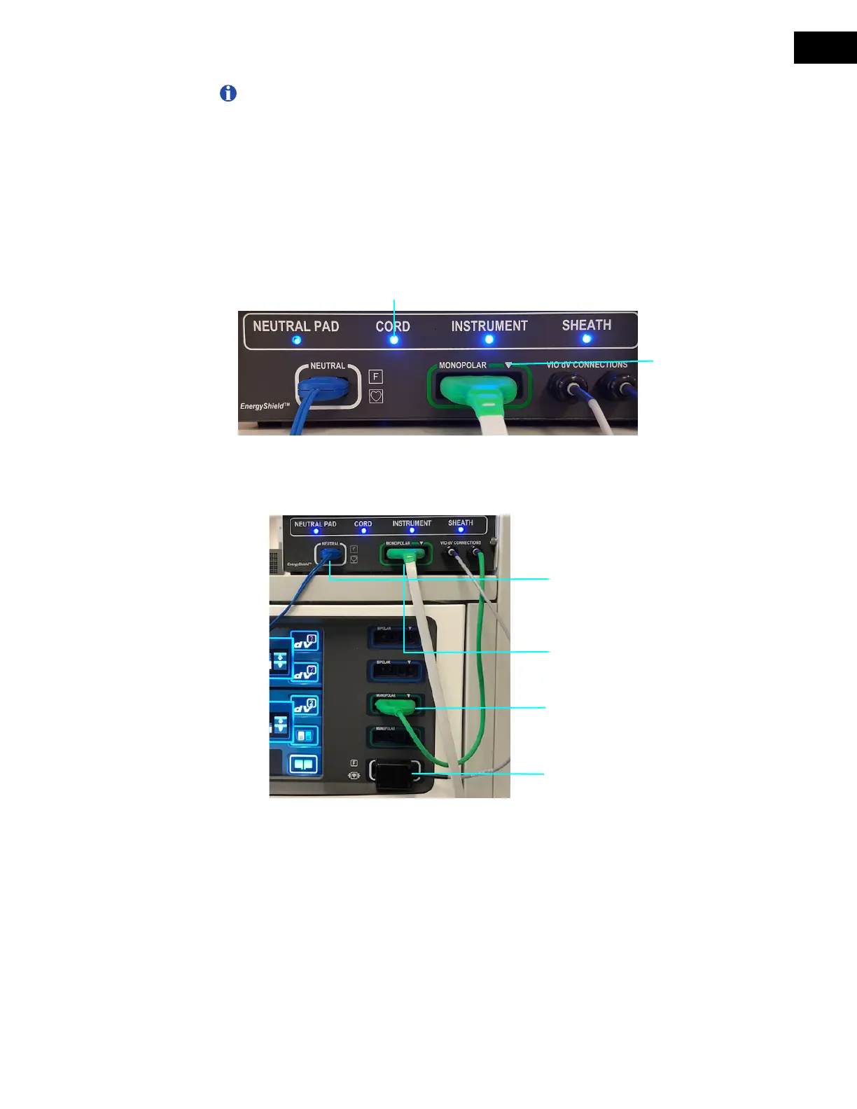 above the monopolar receptacle on the EnergyShield Monitor (