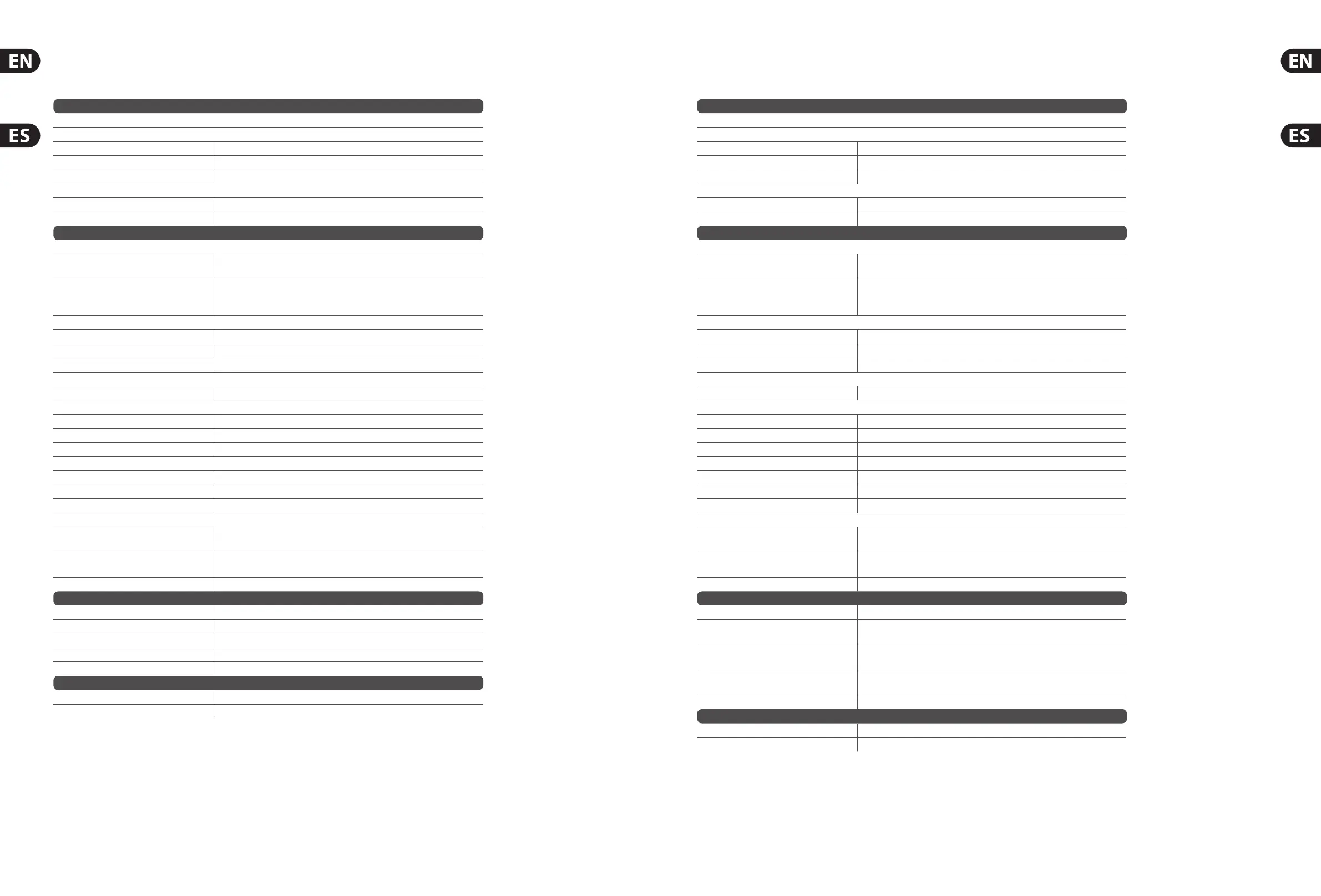 Specications Especicaciones técnicas