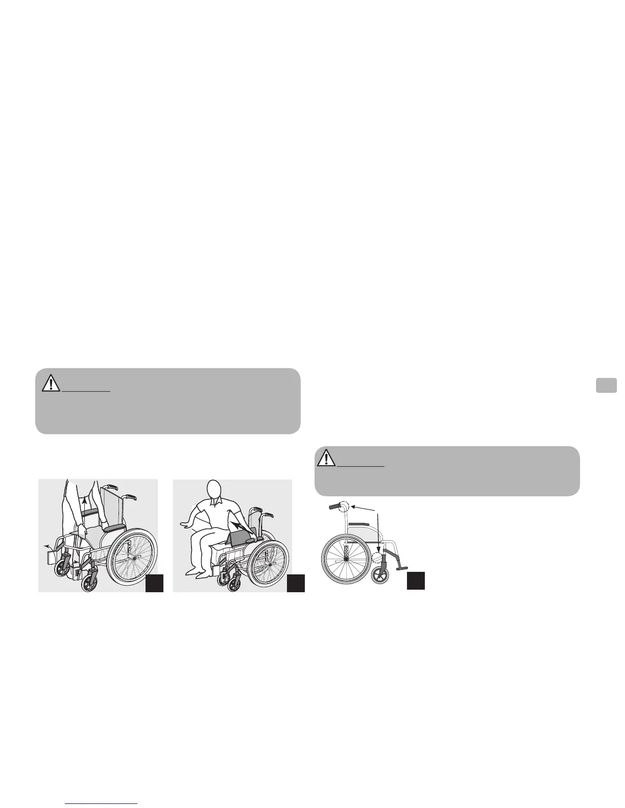 - Then, engage the two manual brakes, open the footrest/