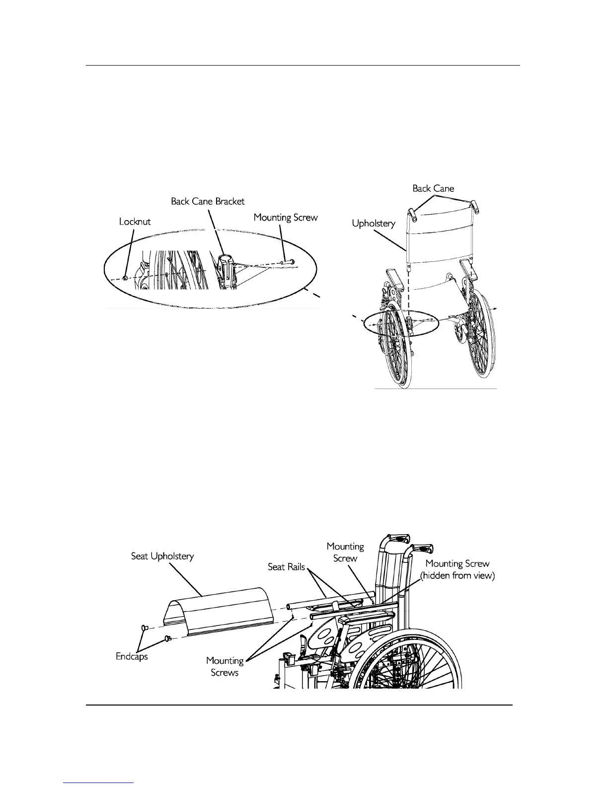 1. Remove the mounting screw and locknut (M6) that secures the back cane to the back