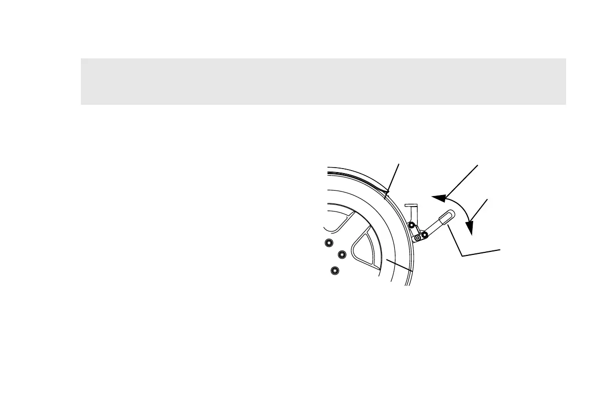 1. Pull handle back toward tire to disengage wheel lock.
