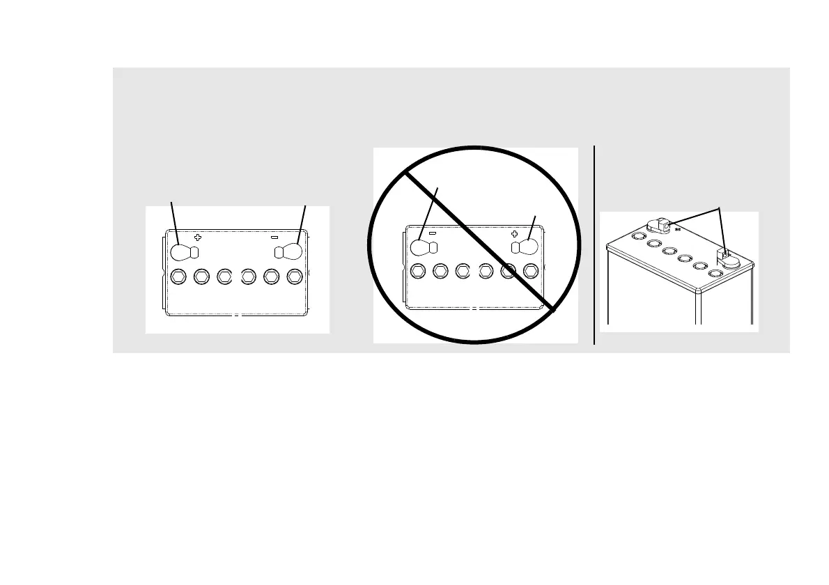 Batteries that have the reverse terminal configuration MUST not be used - otherwise injury and damage may occur.