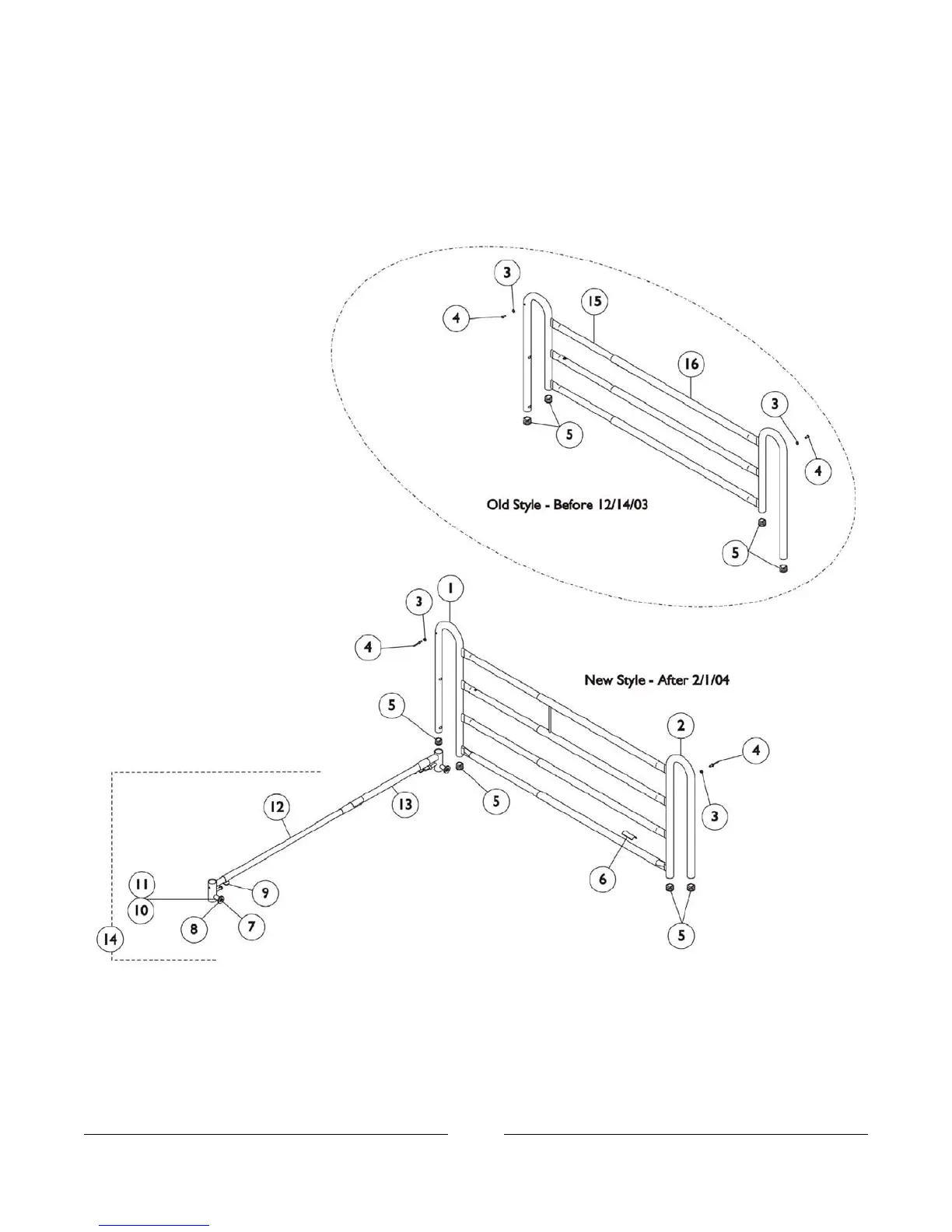 Invacare Bed Rails - Deluxe Spring Loaded Bed Rails 6628 & 6628-TSS; Old Style Illustration (Before 12;14;03); New Style Illustration (After 2;1;04)