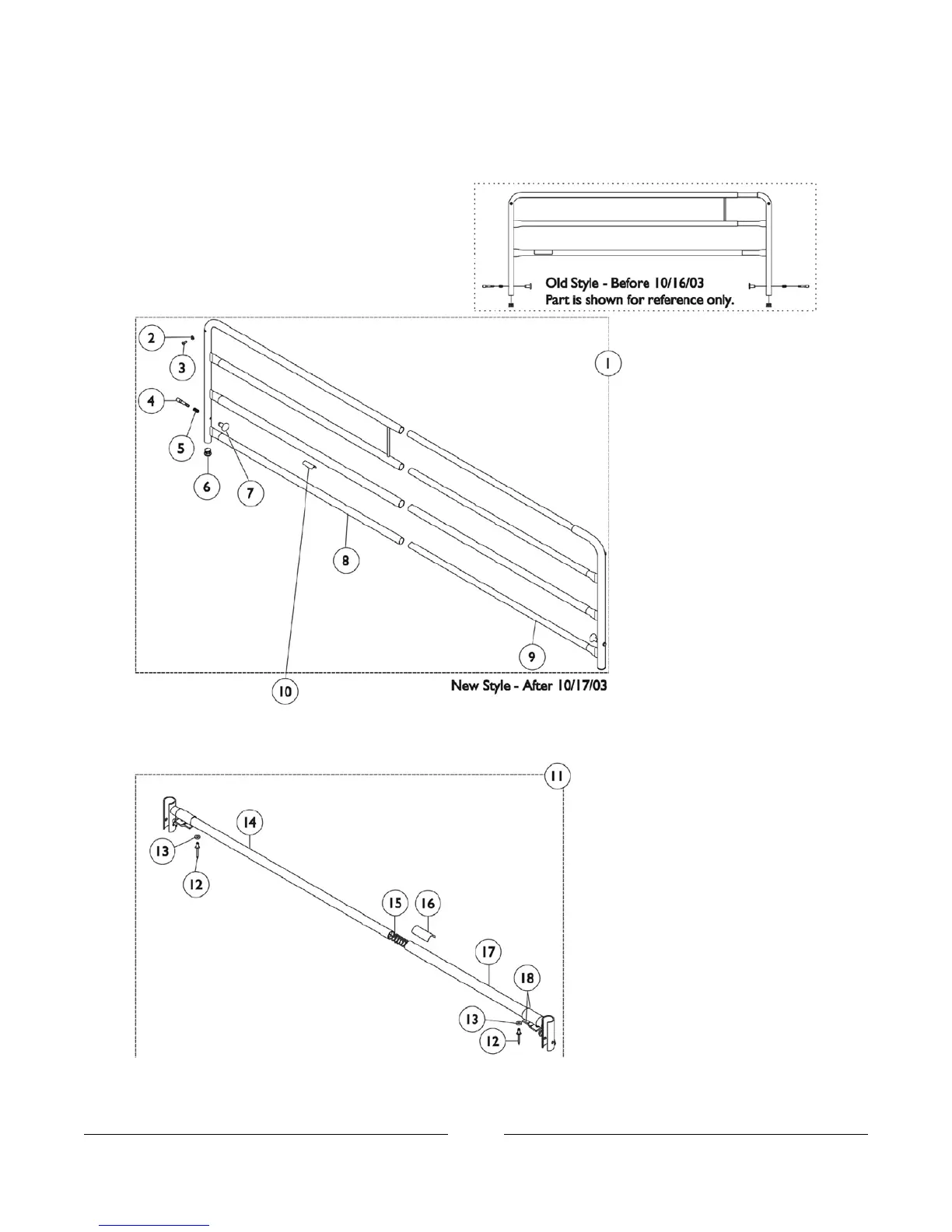 Invacare Bed Rails - Standard Spring Loaded Bed Rails 6629; Old Style Illustration (Before 10;16;03); New Style Illustration (After 10;17;03)