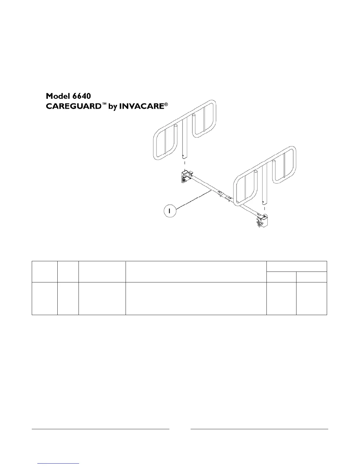 Invacare Bed Rails - Economy Bed Rail 6640; Illustration for 6640 Economy Bed Rail; Parts List for 6640