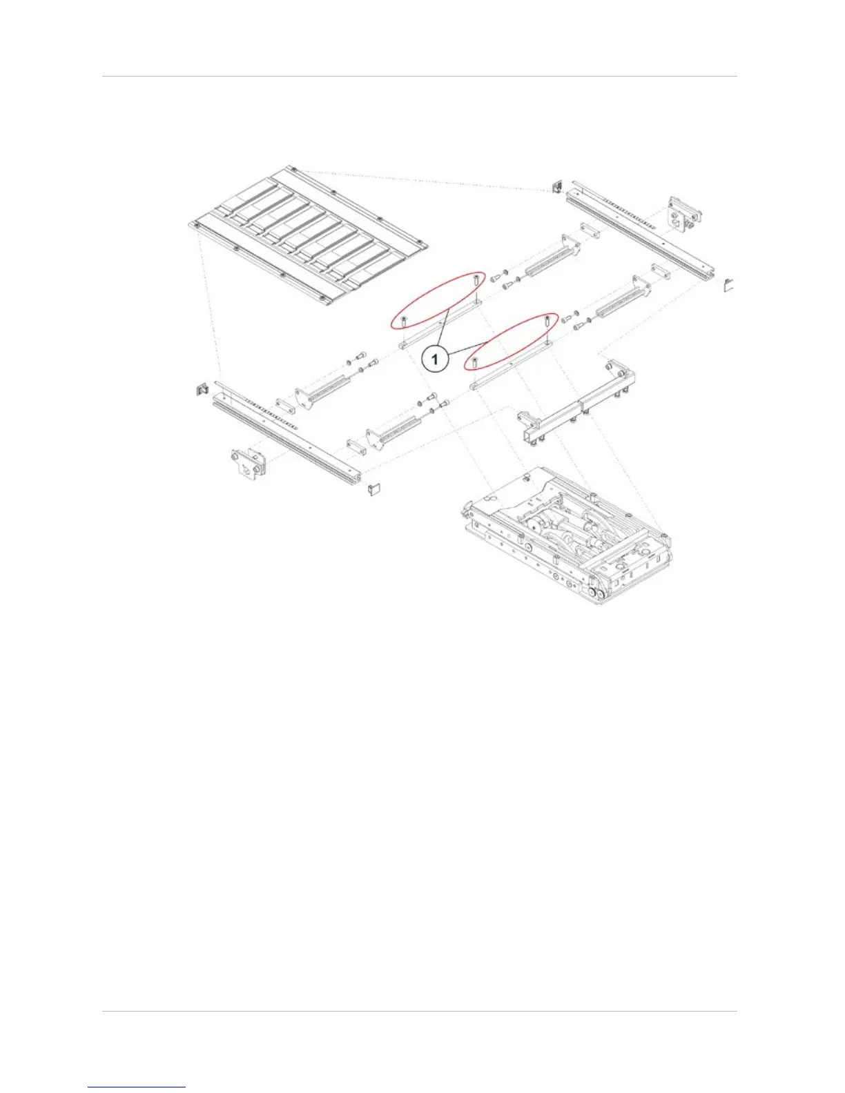 Remove the seat frame by removing the screws (1) with a T40 Torx wrench.