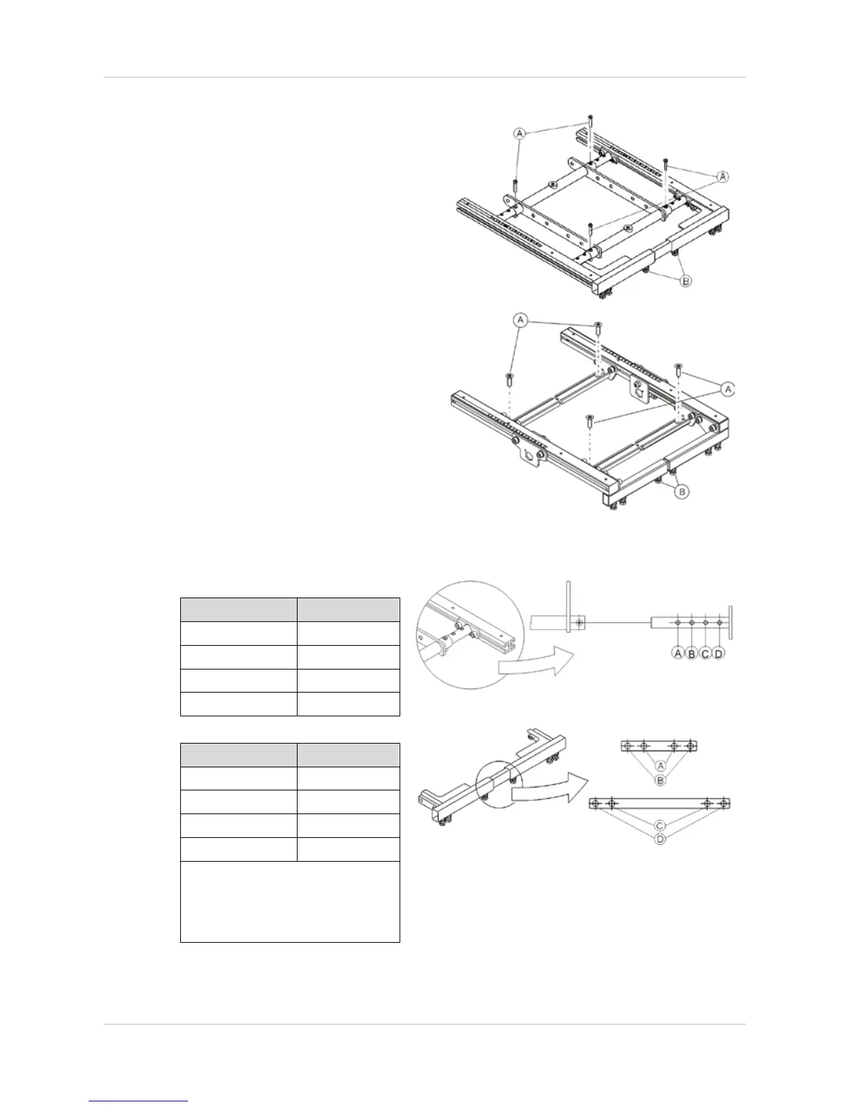 • Adjust the seat frame and the legrest fixation to the desired width according to the following