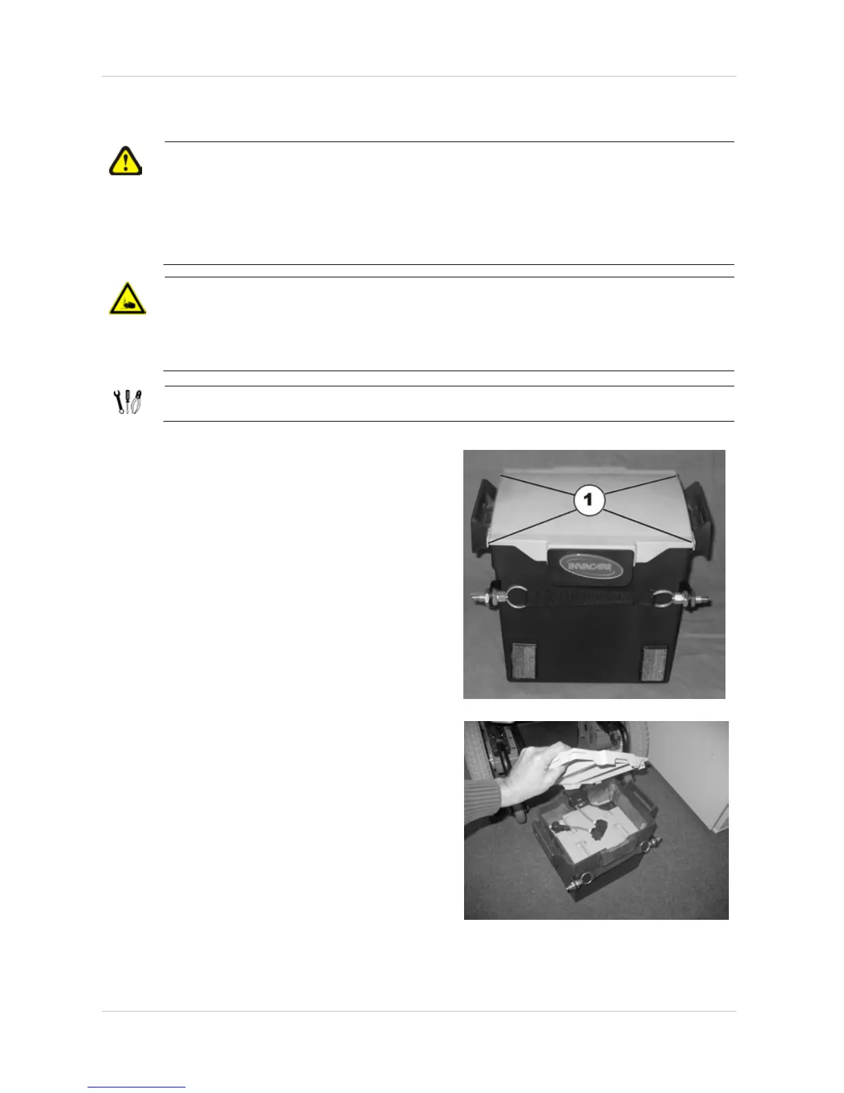 • Ensure that the battery terminal caps have been replaced if you are not working on the battery