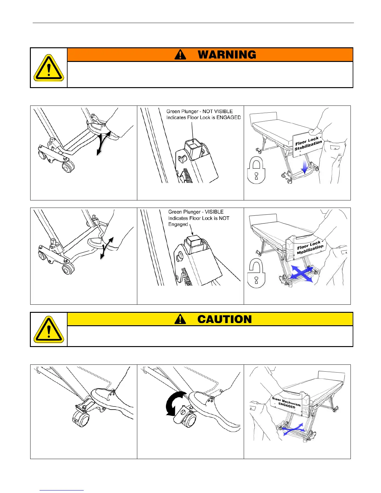 Do not move the bed unless the floor lock is disengaged (unlocked).