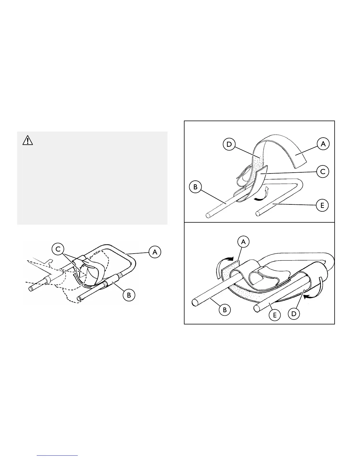 2.SecurefeettofootreststrapBusingsmallfasteningstrapsC.