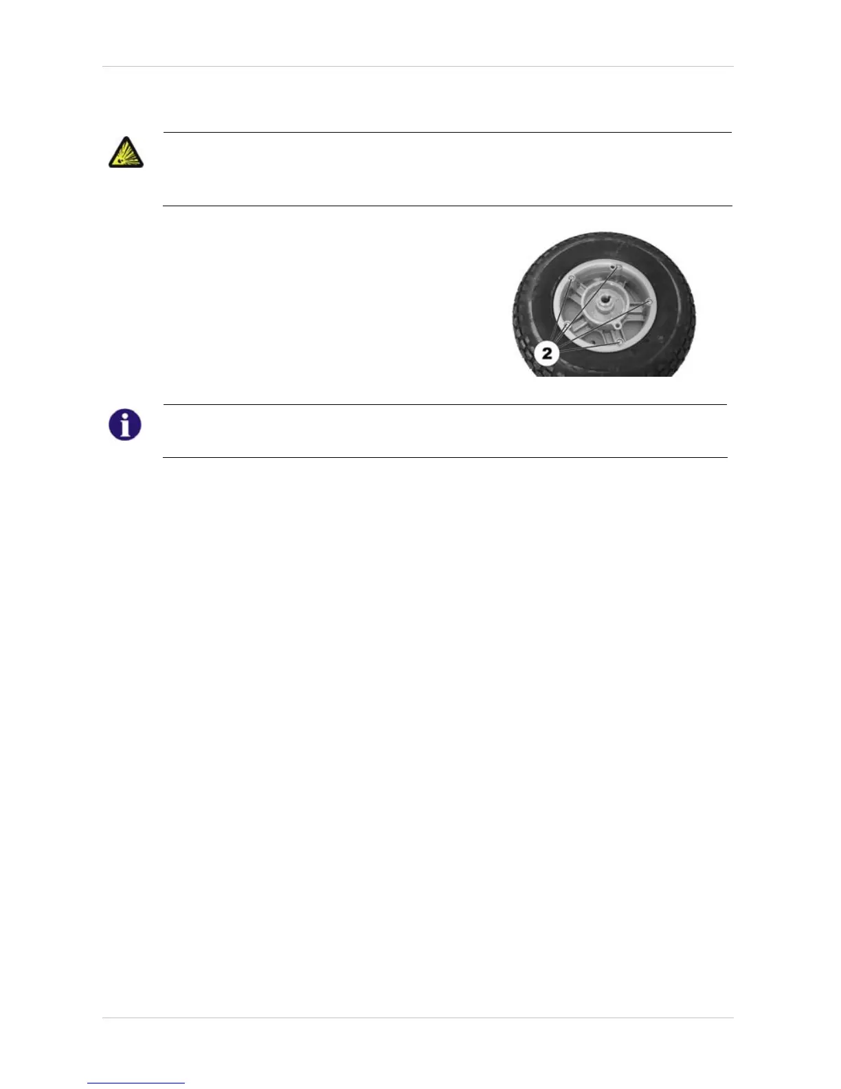 There is considerable pressure in the tyre. Danger of injury! Parts can be thrown out and