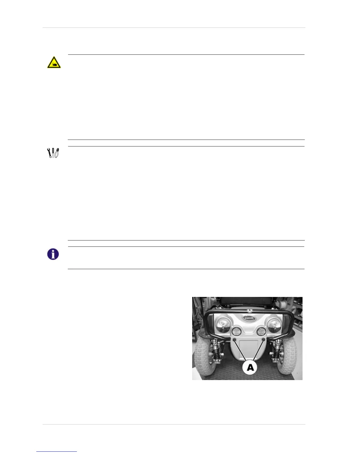 • When jacking up the wheelchair please use a block of wood that is large enough to provide