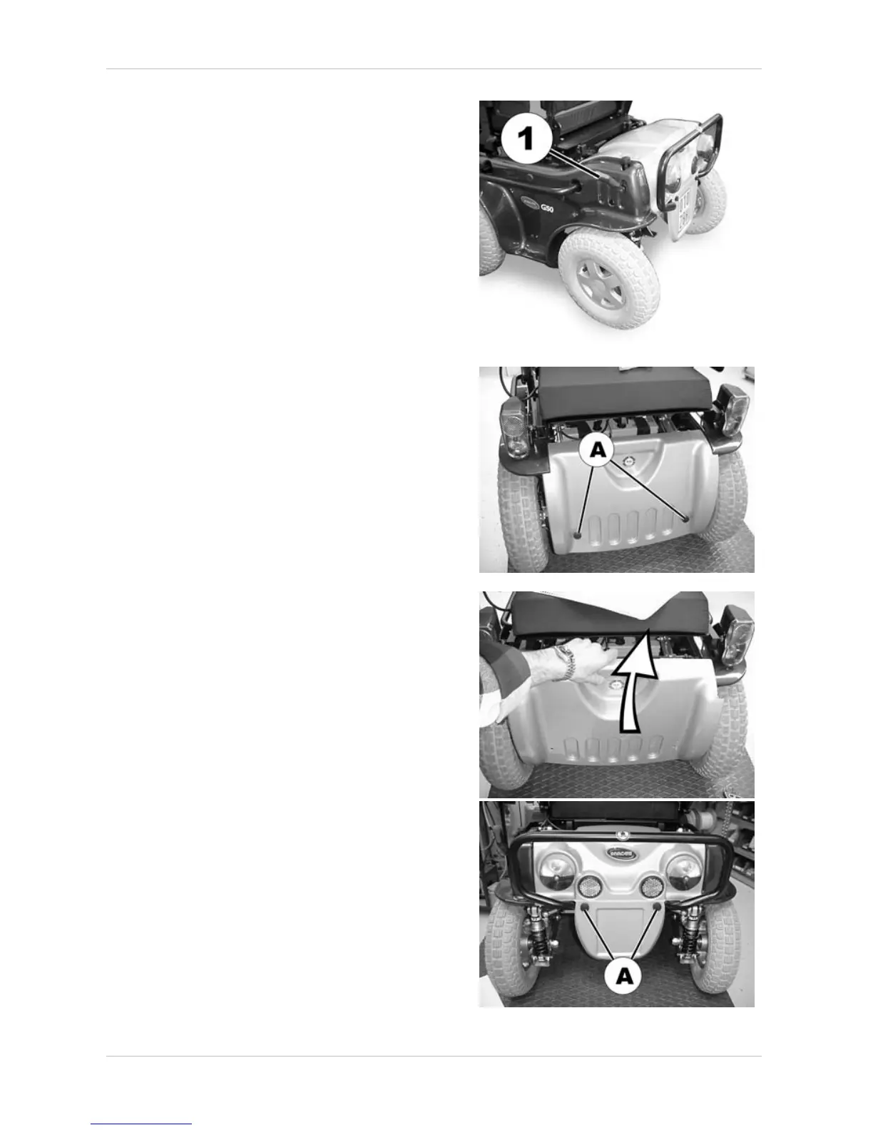 Loosen and remove the knurled screws (A) of