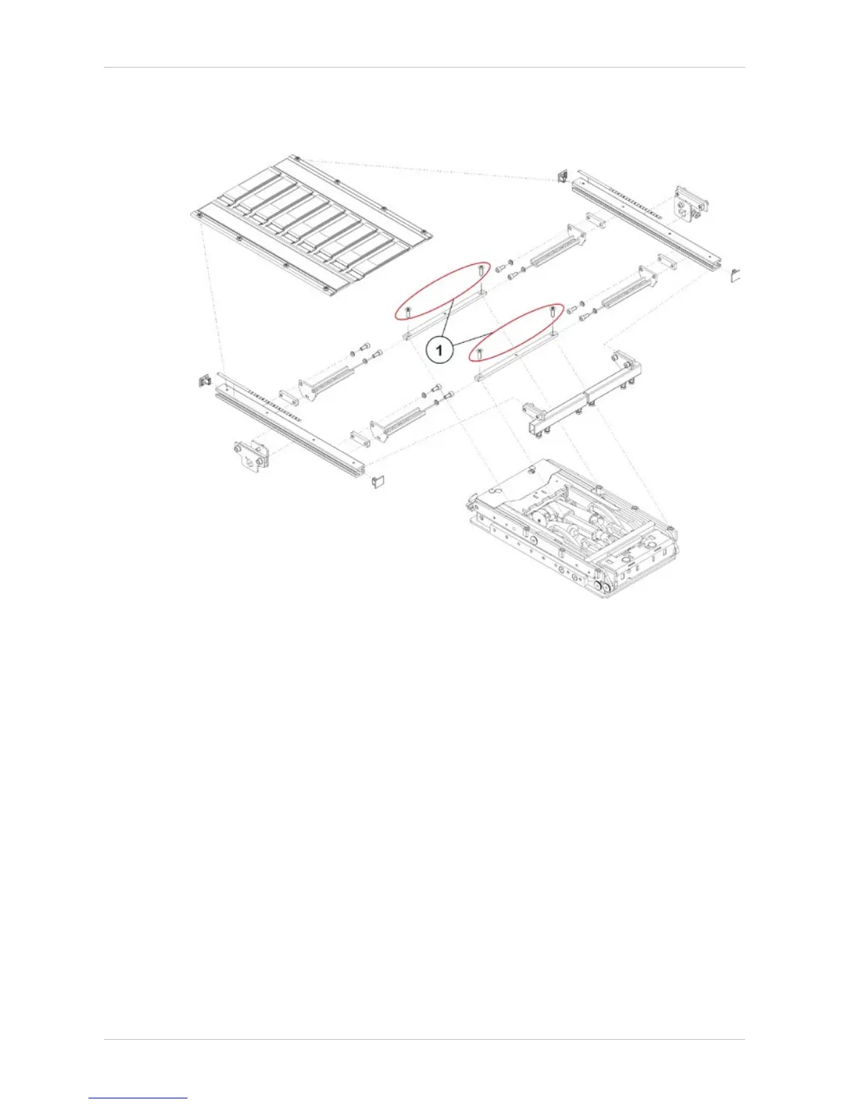 Remove the seat frame by removing the screws (1) with a T40 Torx wrench.