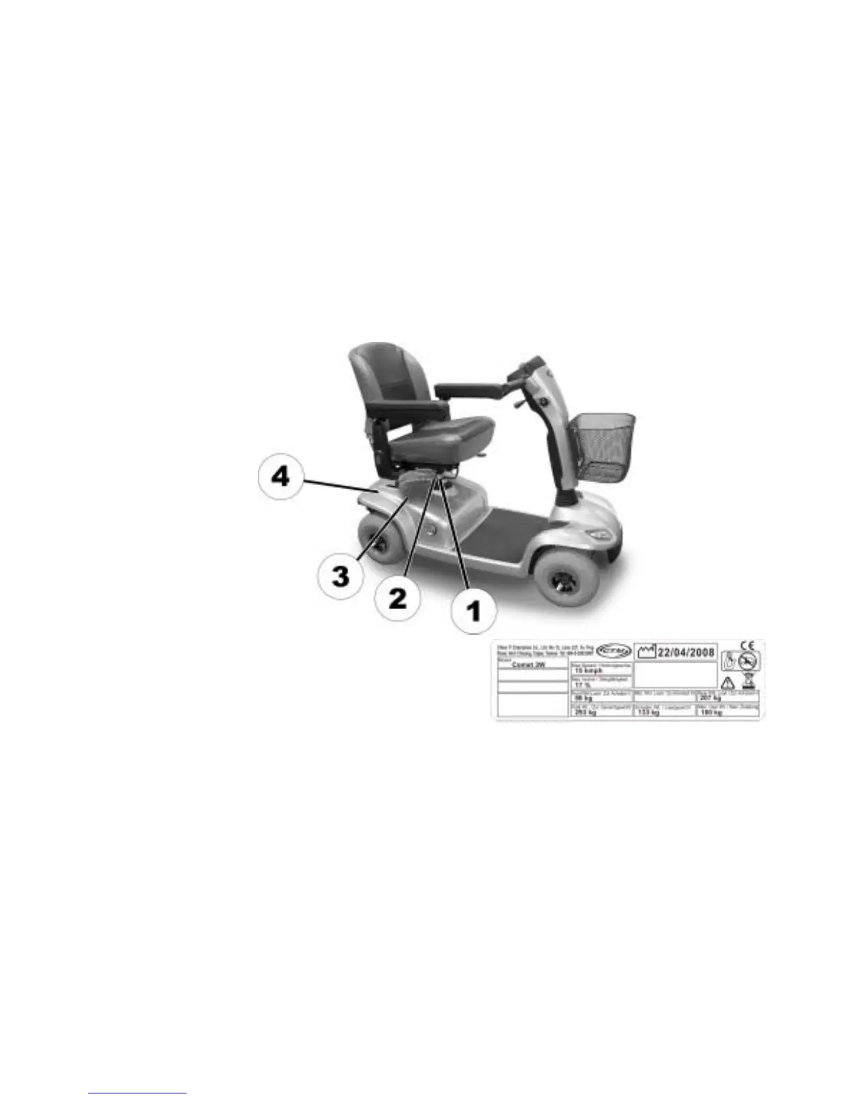 1) Identification label sticker on the seat support tube