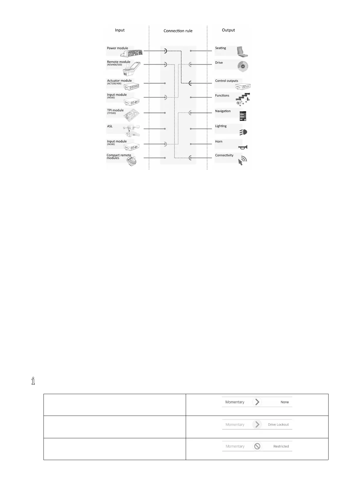 Connectionruleslinktheinputstotheoutputs.Thesedescribewhichinputsactivatewhichoutputs,includinghowand