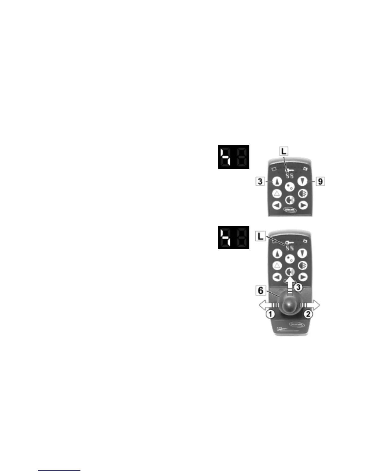 • Push Joystick (6) to the right or left (1+2) until the