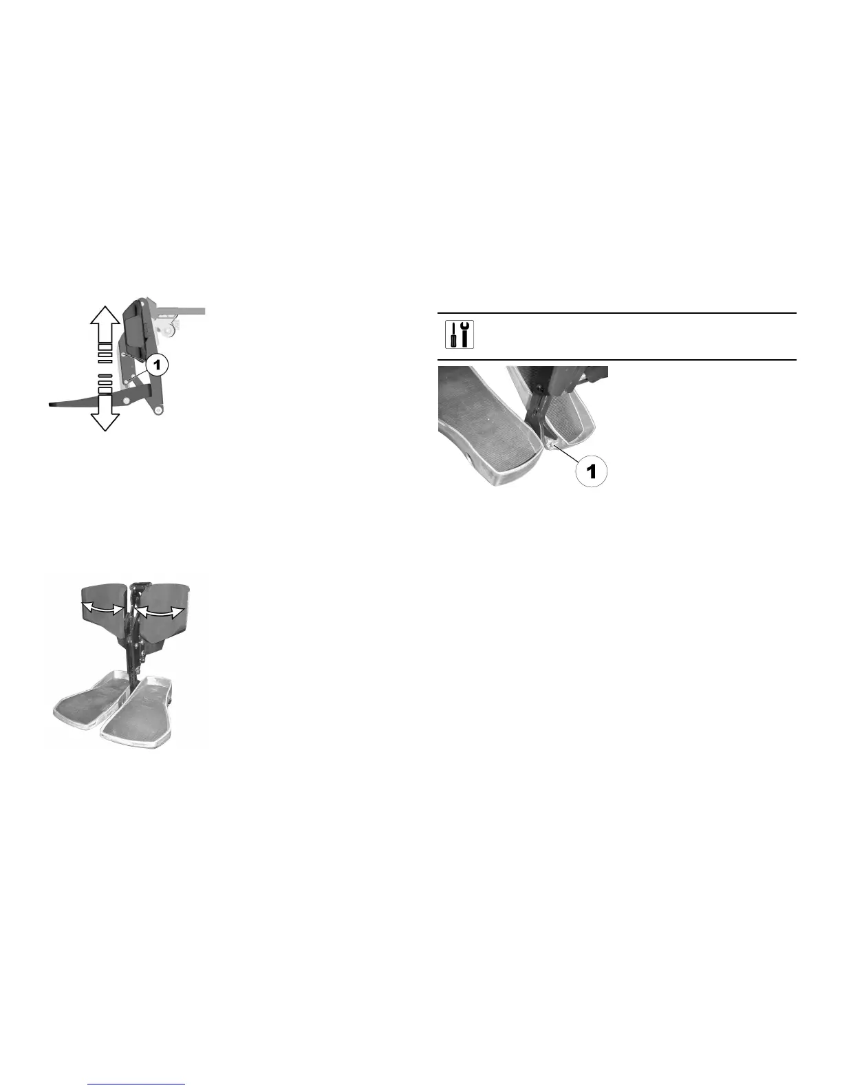 1.Foldupthefootplatesinordertoaccesstheadjustingscrews.