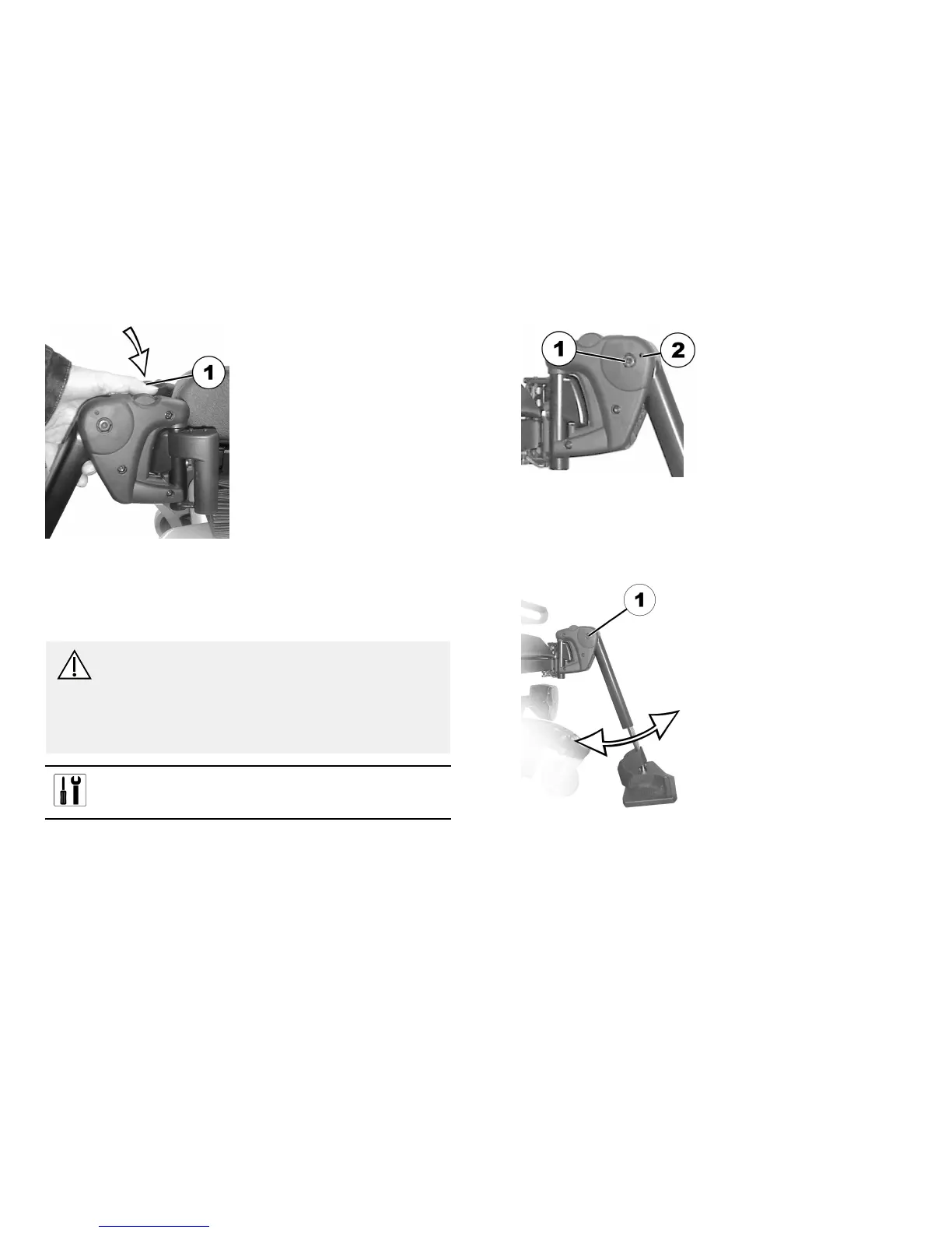 1.Presstheunlockingbutton(1)andswivelthefootrest/legrest